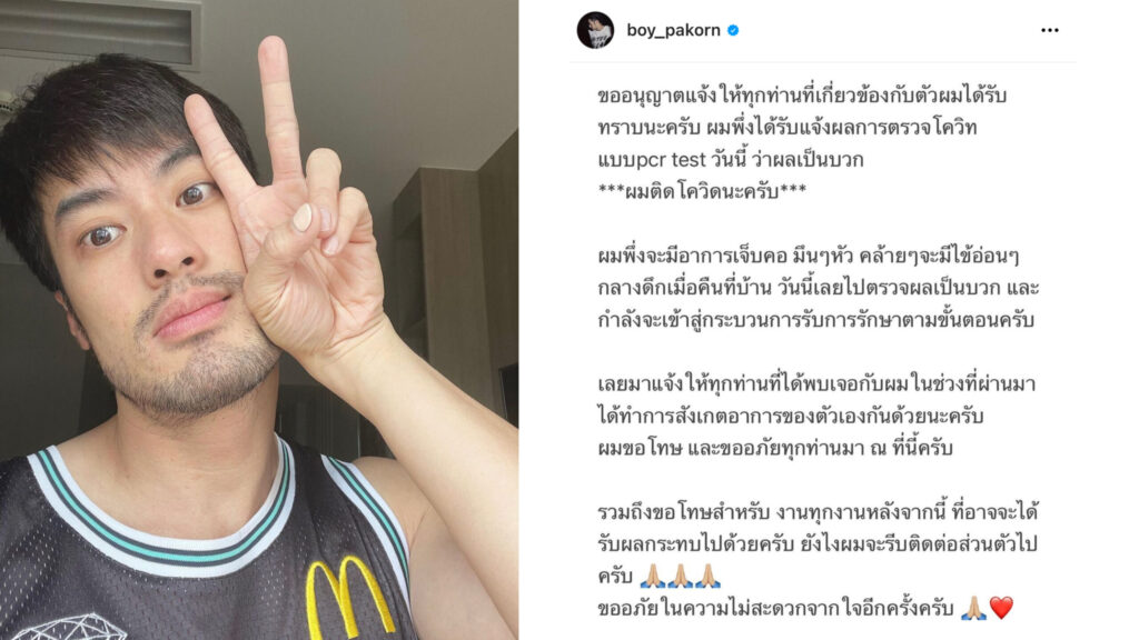 นักแสดงหนุ่ม"บอย ปกรณ์"โพสต์รูปชู้2นิ้ว ลั่นใกล้หายป่วยโควิดแล้ว แฟนคลับแห่ส่งกำลังใจสู้ๆ