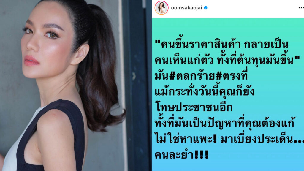 แรงดีไม่ตก! นักแสดงสาว"อ๋อม สกาวใจ"ซัดแหลกหลังราคาสินค้าขึ้น วอนหยุดโทษประชาชน ขอร้องอย่าหาแพะ