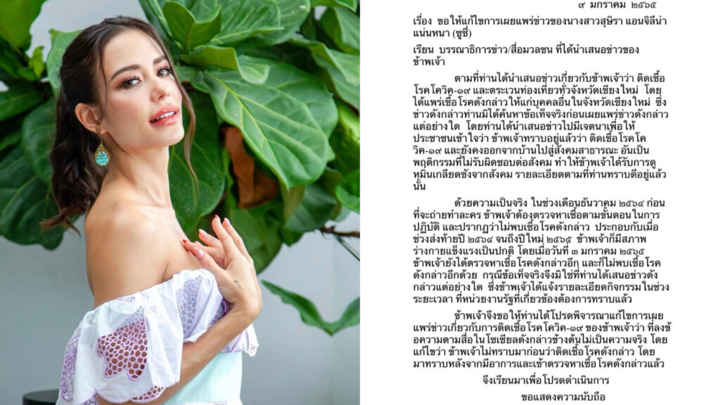 เคลียร์ชัด จบม้วน! "ซูซี่ สุษิรา"ยันไม่ได้แพร่เชื้อกระจาย รับติดจริง วอนสื่อแก้ไขข้อมูลให้เป็นความจริงด้วย