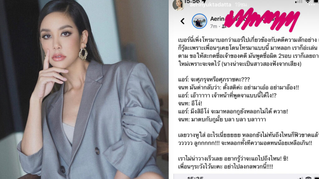 ฟิวขาด!นักแสดงสายแซ่บ"แอริน สิรีภรณ์"สุดทนแซะเละมิจฉาชีพโทรมาหลอกลวง วอนทุกคนอย่าหลงเชื่อ