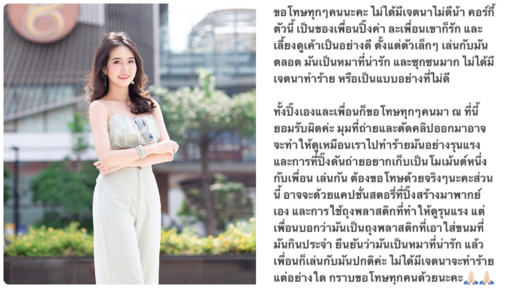 นักแสดงสาว "ปิ๊ง จิดาภา"ขอโทษปมดราม่าคลิปถุงคลอบหัวน้องหมา ยันไม่มีเจตนาทำร้าย