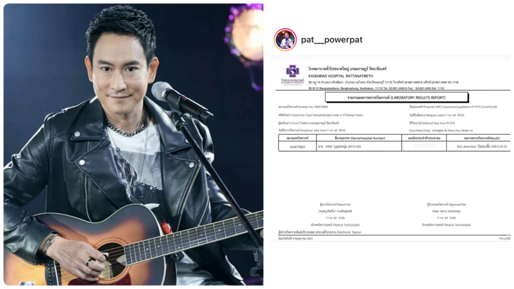 “แพท พาวเวอร์แพท”โชว์ผลตรวจโควิดไม่พบเชื้อ ขอกักตัวดูอาการ14วัน