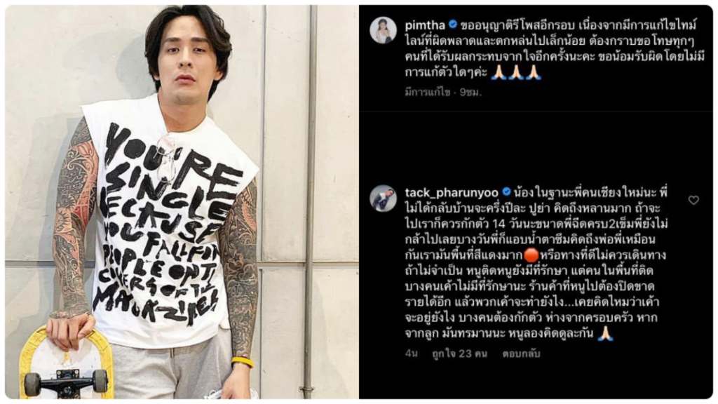 นักแสดงหนุ่ม "แทค ภรัณยู" คอมเมนต์ตำหนิ "พิมฐา"ไม่ควรเดินทางในฐานะคนเชียงใหม่ ลั่นพี่ฉีด2เข็มยังไม่กล้าไป