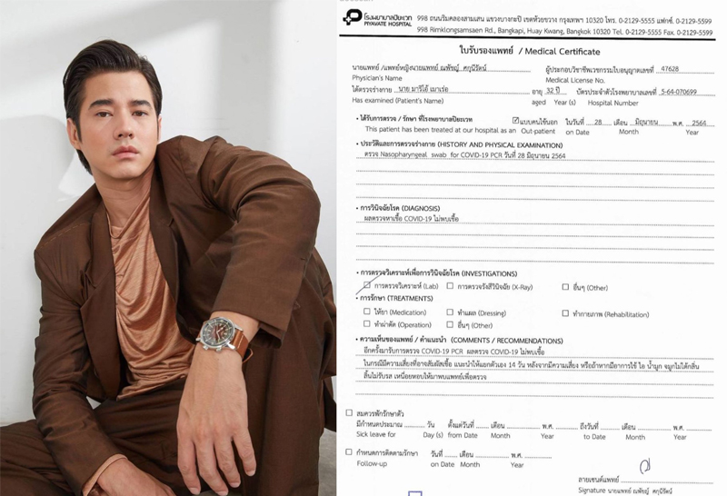 “มาริโอ้” โชว์ผลตรวจไม่พบเชื้อโควิด หลังร่วมงาน “แพนเค้ก”