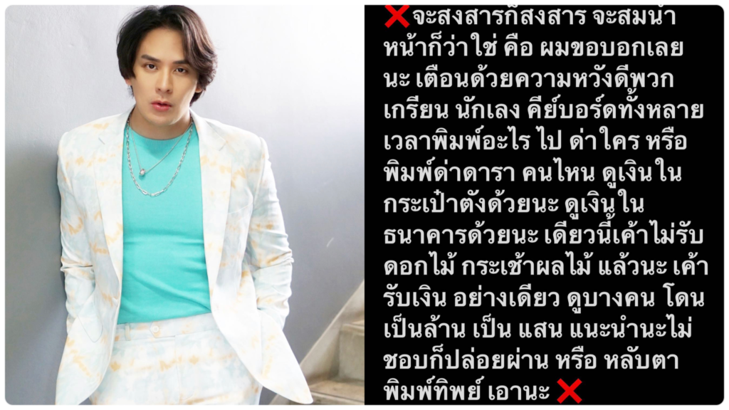 ปริ๊ด! “แทค ภรัณยู” เตือนเกรียนคีย์บอร์ดด่าใครดูเงินในธนาคารด้วย