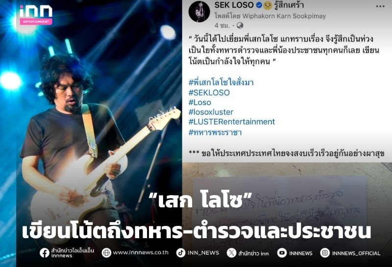 “เสก โลโซ เขียนโน้ตถึงทหาร-ตำรวจและประชาชน ชูใจ ‘ขอให้ปลอดภัยกันทุกคนครับ’”