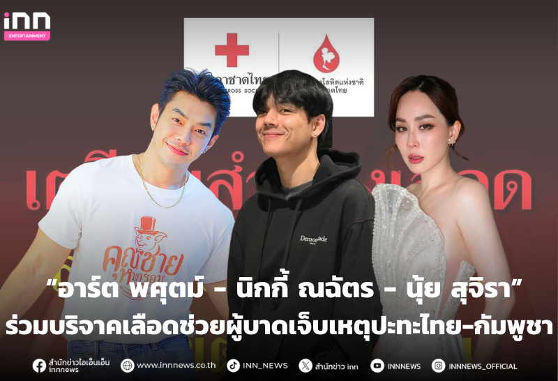ร่วมใจ!! คนบันเทิง “อาร์ต พศุตม์ - นิกกี้ ณฉัตร - นุ้ย สุจิรา” เชิญชวนร่วมกันบริจาคเลือดเพื่อช่วยเหลือผู้ได้รับบาดเจ็บจากเหตุปะทะชายแดนไทย-กัมพูชา