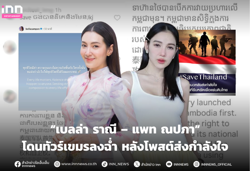 เดือด! “เบลล่า ราณี – แพท ณปภา” โดนทัวร์กัมพูชาลง หลังโพสต์ส่งกำลังใจให้ผู้ที่ได้รับผลกระทบจากเหตุปะทะชายแดน แฟนคลับไทยรีบปกป้อง