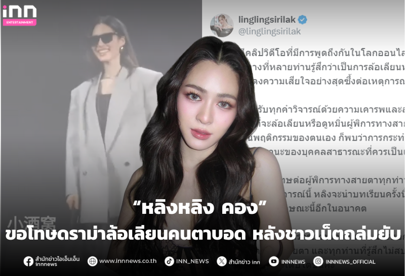 ทัวร์ลง! “หลิงหลิง คอง” รีบขอโทษดราม่าล้อเลียนคนตาบอด หลังชาวเน็ตถล่มยับ เผยเสียใจอย่างสุดซึ้งไม่ได้มีเจตนาล้อเลียน