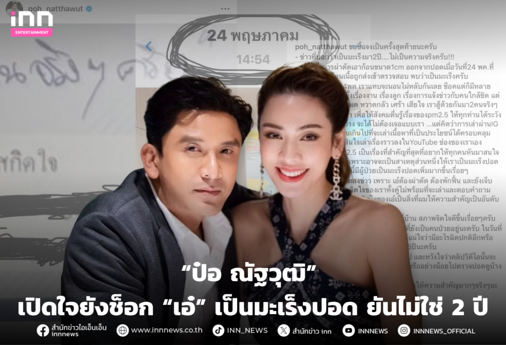 ชี้แจงครั้งสุดท้าย! “ป๋อ ณัฐวุฒิ” เปิดใจยังช็อก “เอ๋” เป็นมะเร็งปอด ยันไม่ใช่ 2 ปี