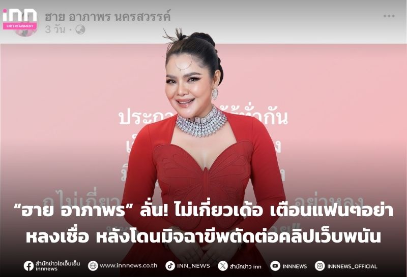 “ฮาย อาภาพร” ลั่น! ไม่เกี่ยวเด้อ เตือนแฟนๆอย่าหลงเชื่อ หลังโดนมิจฉาขีพแอบอ้าง - ตัดต่อคลิปเว็บพนัน