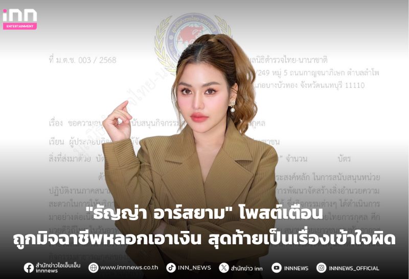 “ธัญญ่า อาร์สยาม” โพสต์เตือนถูกมิจฉาชีพหลอกเอาเงิน สุดท้ายเป็นเรื่องเข้าใจผิด