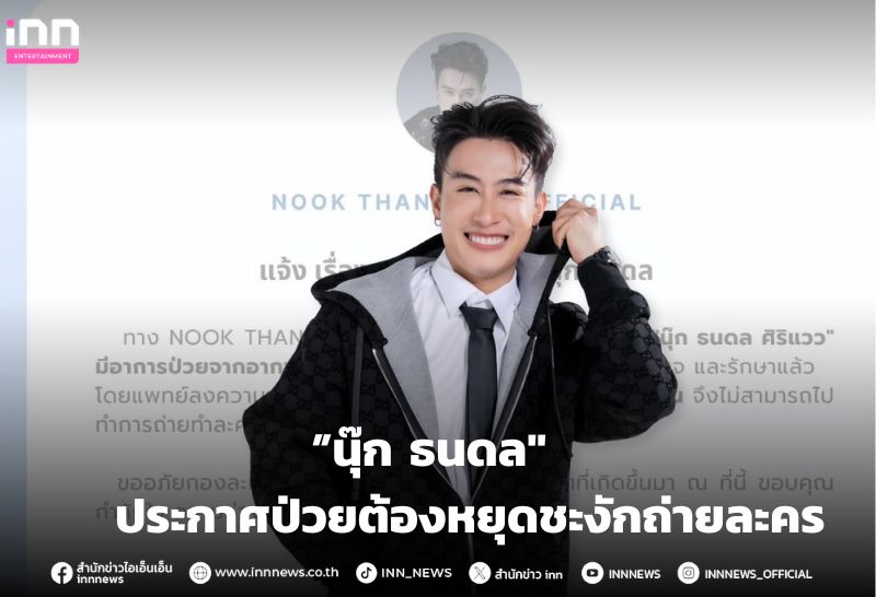 ”นุ๊ก ธนดล“ ประกาศป่วยต้องหยุดชะงักถ่ายละคร ขอโทษผู้ที่ได้รับผลกระทบ แฟนคลับแห่ส่งกำลังใจ