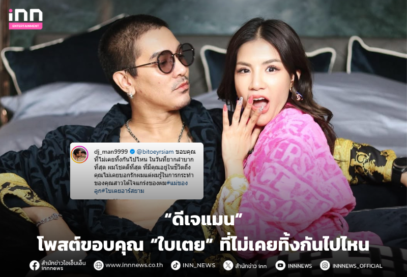 “ดีเจแมน” โพสต์ขอบคุณ “ใบเตย” ที่ไม่เคยทิ้งกันไปไหน
