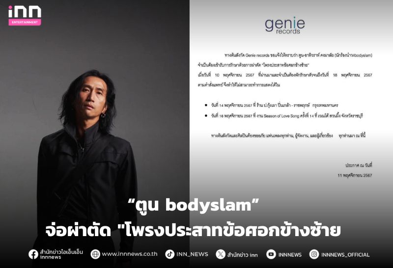 ”ตูน bodyslam“ จ่อผ่าตัด “โพรงประสาทข้อศอกข้างซ้าย ขอโทษผู้ได้รับผลกระทบ