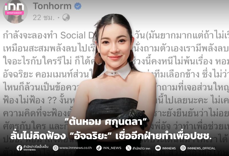 “ต้นหอม ศกุนตลา” ลั่นไม่คิดฟ้อง “อัจฉริยะ” เชื่ออีกฝ่ายทำเพื่อปชช. เผยขอโทษหากทำให้โดนด่า