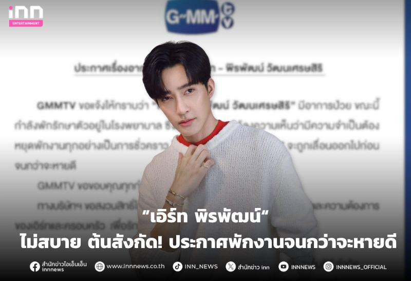 “เอิร์ท พิรพัฒน์” ไม่สบาย ต้นสังกัด! ประกาศพักงานจนกว่าจะหายดี