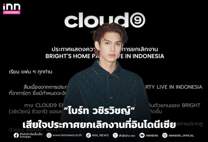 “ไบร์ท วชิรวิชญ์” เสียใจยกเลิกงาน “BRIGHT’S HOME PARTY LIVE IN INDONESIA