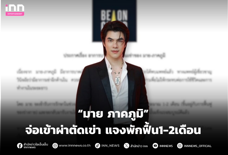 “มาย ภาคภูมิ” จ่อเข้าผ่าตัดเข่า แจงพักฟื้น1-2เดือน