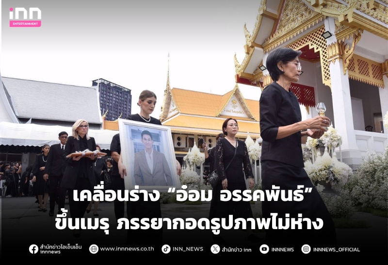 สุดเศร้า! เคลื่อนร่าง “อ๋อม อรรคพันธ์” ขึ้นเมรุเพื่อรอประกอบพิธีฌาปนกิจ ภรรยากอดรูปภาพไม่ห่าง