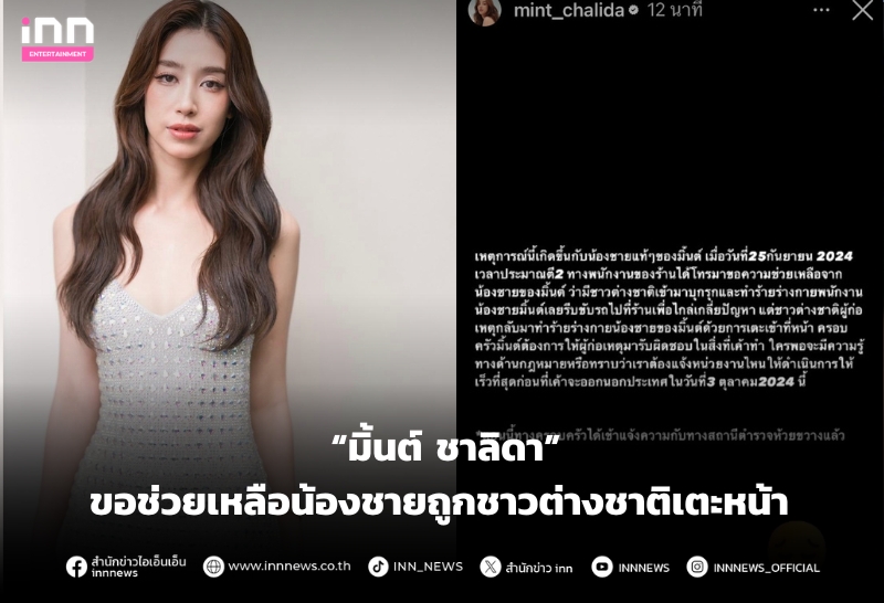 “มิ้นต์ ชาลิดา” ประกาศขอช่วยเหลือน้องชายถูกชาวต่างชาติเตะหน้า หวั่นเรื่องเงียบ