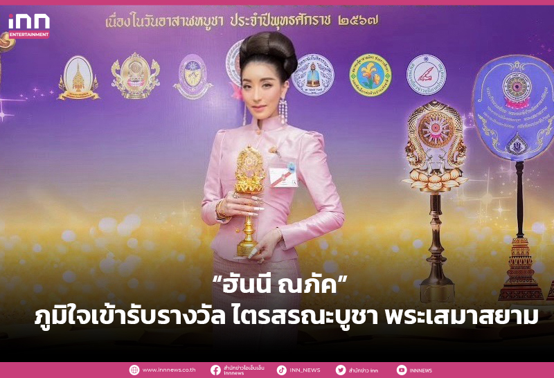 "ฮันนี่ ณภัค" นางเอกซีรี่ส์ธรรมะ ภูมิใจและปลาบปลื้มใจ เข้ารับรางวัล ไตรสรณะบูชา พระเสมาสยาม เนื่องในวันอาสาฬหบูชา ประจำปี ๒๕๖๗