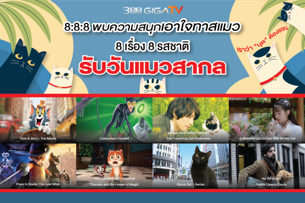 “3BB GIGATV” ต้อนรับวันแมวสากล ชวนดูซีรีส์หนัง 8 เรื่อง 8 รสชาติให้ดูเพลินตลอดสิงหาคมนี้