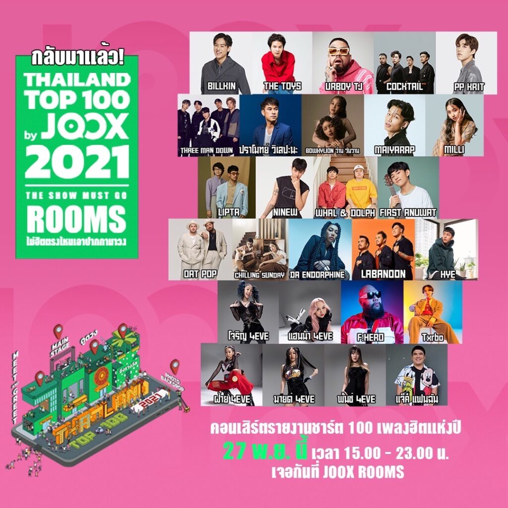 ลุ้น 100 เพลงฮิตที่สุดแห่งปี กับ มิวสิคเฟสติวัลสุดยิ่งใหญ่ ต่อเนื่อง 8 ชั่วโมงเต็ม ‘Thailand Top 100 by JOOX 2021 The Show Must Go ROOMS