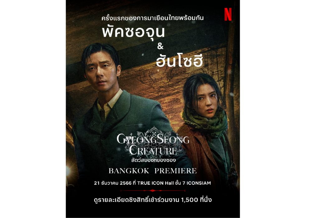 Netflix ประกาศเซอร์ไพรส์ใหญ่ส่งท้ายปี เตรียมพา “พัคซอจุน-ฮันโซฮี” บินลัดฟ้าพบปะแฟนไทยเปิดตัวซีรีส์ฟอร์มยักษ์ สัตว์สยองกยองซอง (Gyeongseong Creature) 21 ธันวาคมนี้ ที่ ICONSIAM!