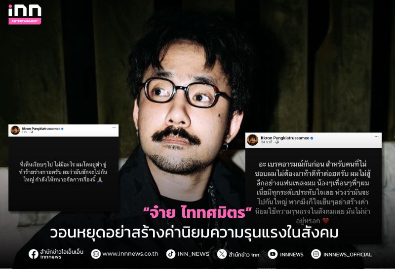 โซเชียลสะเทือน “จ๋าย ไททศมิตร” วอนหยุดอย่าสร้างค่านิยมความรุนแรงในสังคม หลังถูกขู่ทำร้ายร่างกาย ชาวเน็ตเข้ามาคอมเมนต์เป็นห่วงสนั่น