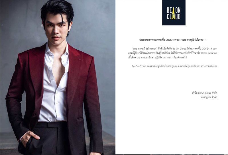 ต้นสังกัดแจ้ง "มาย ภาคภูมิ" ติดเชื้่อโควิด-19 กักตัวแบบ Home Isolation แฟนๆแห่ส่งกำลังใจ