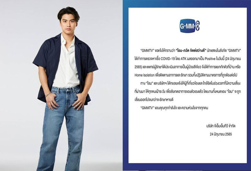 “โอม ภวัต” ตรวจพบเชื้อ โควิด-19 แยกกักตัวที่บ้านแล้ว แจ้งเลื่อนงานจนกว่าหายดี