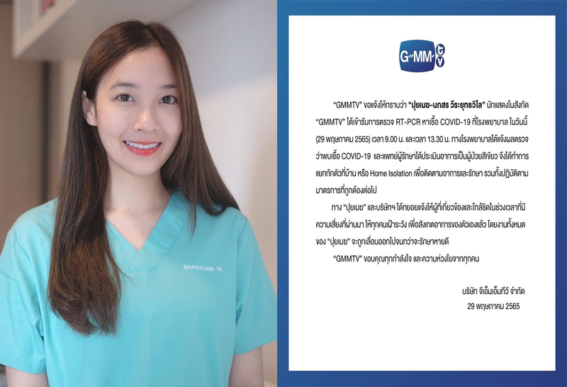 “ปุยเมฆ นภสร ” นักแสดงในสังกัด GMMTV ติดเชื้อโควิด-19 อีกราย