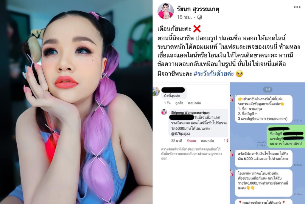 อย่าเชื่อ! “เจนนี่ รัชนก” เตือนแฟนคลับ หลังมิจฉาชีพอ้างชื่อแอดไลน์หลอกคนโอนเงิน