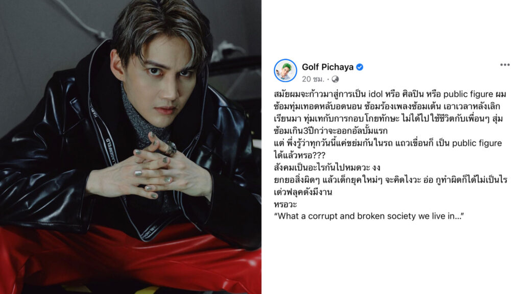 ฟาดอีกหนึ่งยก!”กอล์ฟ พิชญะ”ตอบแล้วโพสต์ปม”กาโตะ”ยันไม่ควรยกยอสิ่งที่ทำผิด