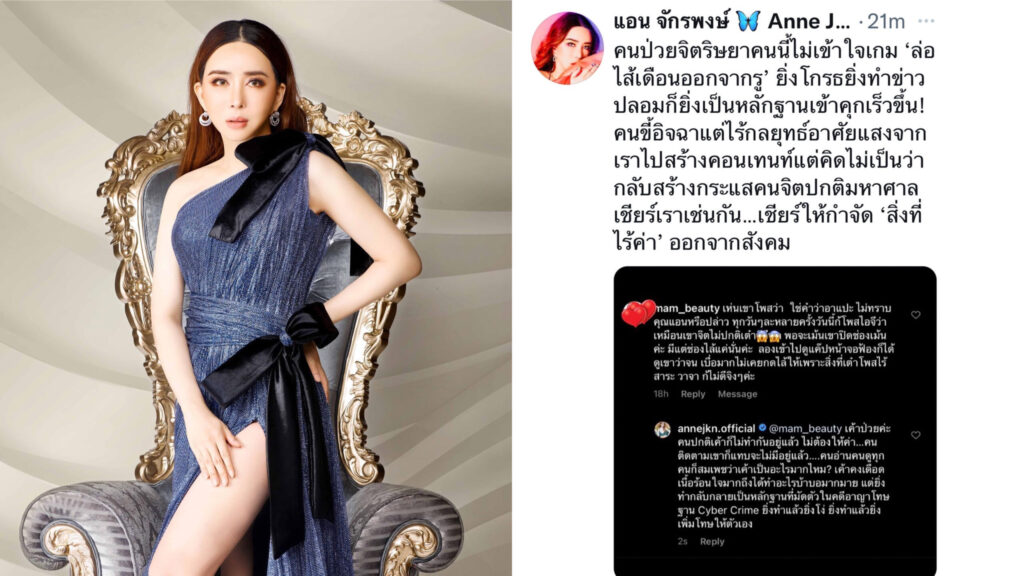 “แอน” ออกโรงเตือนสติ เต๋า ยิ่งโพสต์ยิ่งหลักฐานมัดตัว