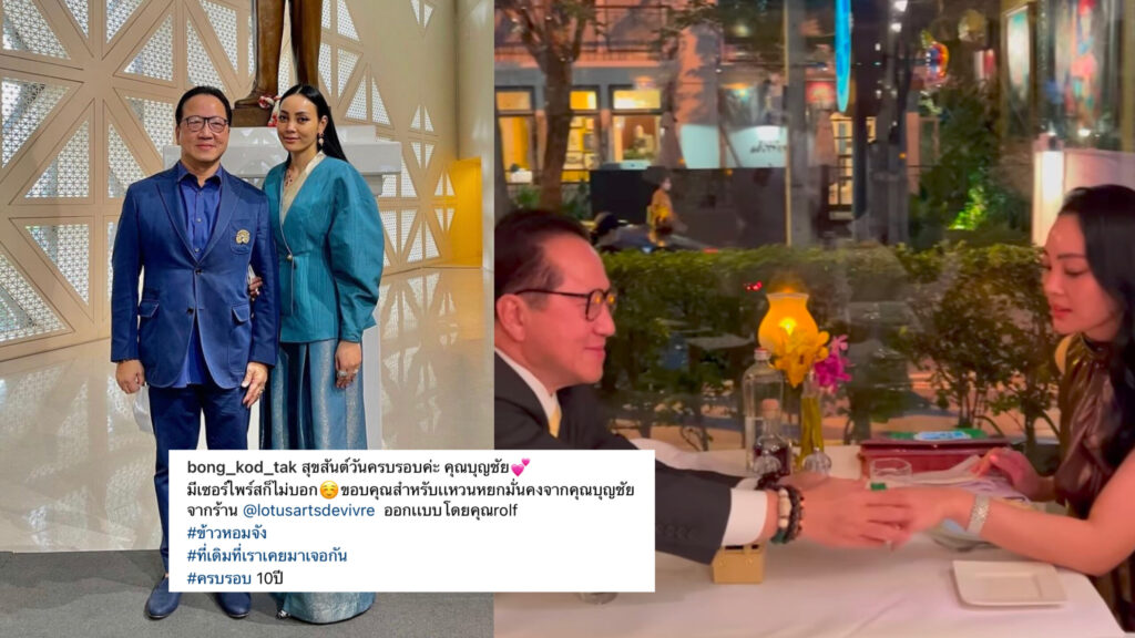 หวานมาก! “ตั๊ก บงกช” ยิ้มแก้มปริ “เจ้าสัวบุญชัย” มอบแหวนหยกให้ครบรอบ10ปี