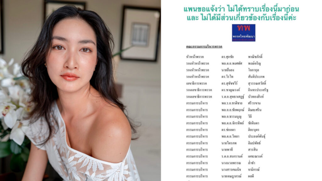 นางเอกสาวสวย "แพนเค้ก เขมนิจ"ชี้ชัดไม่ทราบเรื่องหลังชื่อโผล่พรรคไทยพัฒนา ยันไม่มีส่วนเกี่ยวข้อง