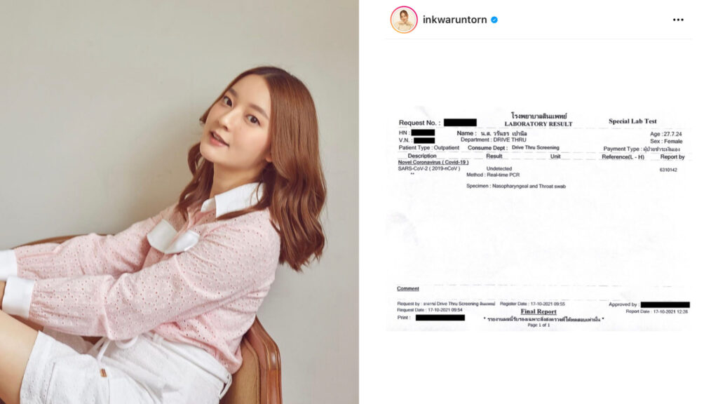 ไม่พบเชื้อ! “อิ้งค์ วรันธร”เผยผลตรวจหลังกักตัว7วัน ลั่นขอบคุณทุกกำลังใจ