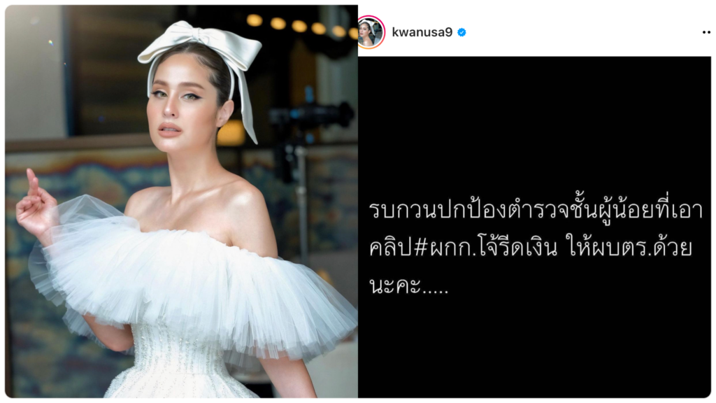 นางเอกมากความสามารถ"ขวัญ อุษามณี" ออกโรง รบกวนปกป้องตำรวจชั้นผู้น้อยที่เอาคลิปผกก.โจ้ให้ผบตร.ด้วยเชื่ออีกฝ่ายทำสิ่งที่ถูกต้อง