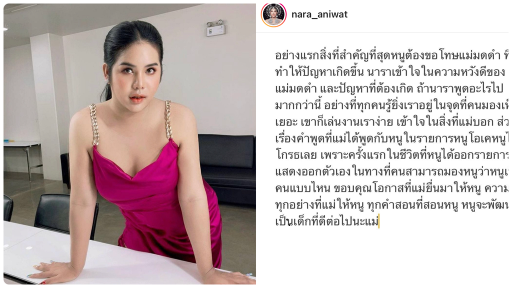 เคลื่อนไหวแล้ว! “นารา”โพสต์ ขอโทษ”มดดำ”ปมดราม่าไม่ให้เกียรติในรายการ เชื่ออีกฝ่ายหวังดี