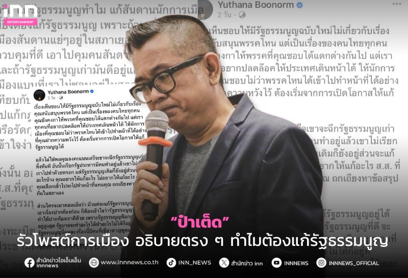 ไม่พูดก็ไม่ได้! “ป๋าเต็ด” รัวโพสต์การเมือง อธิบายตรง ๆ ทำไมต้องแก้รัฐธรรมนูญ