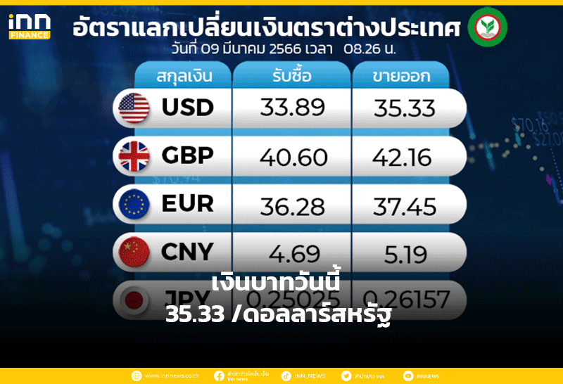 เงินบาทวันนี้ 35.33 /ดอลลาร์สหรัฐ