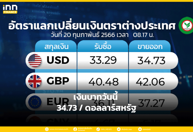 เงินบาทวันนี้ 34.73 / ดอลลาร์สหรัฐ