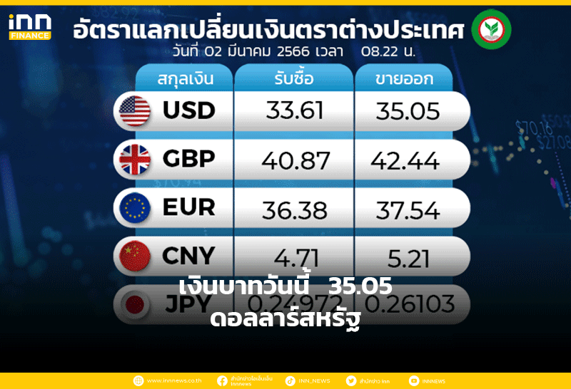 เงินบาทวันนี้ 35.02 / ดอลลาร์สหรัฐ