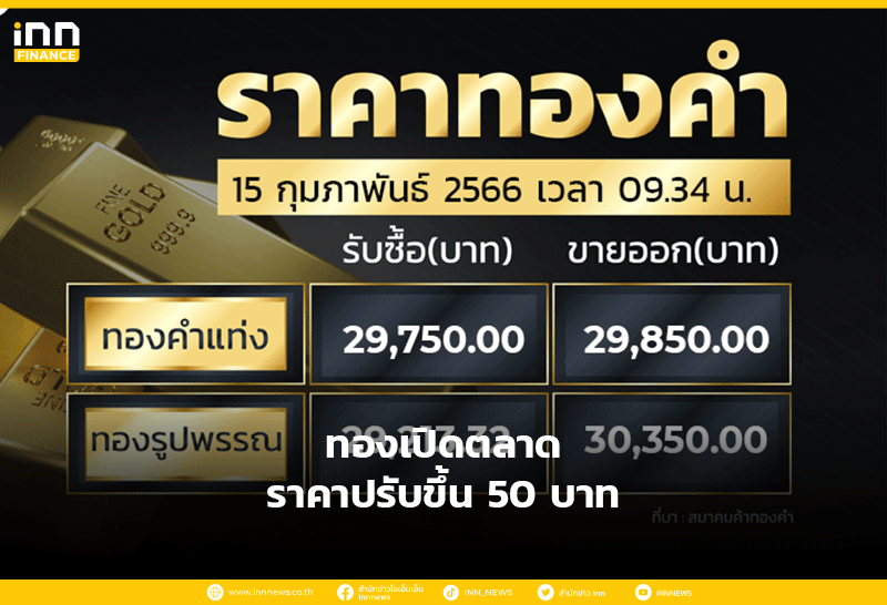 ทองเปิดตลาด ราคาปรับขึ้น 50 บาท