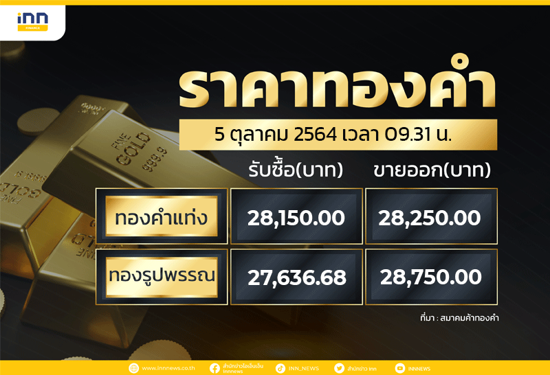 สมาคมค้าทองคำ ประกาศราคาซื้อขายทองครั้งที่ 1 เมื่อเวลา 09.28 น. ราคาปรับขึ้น 100 บ. จากราคาวานนี้