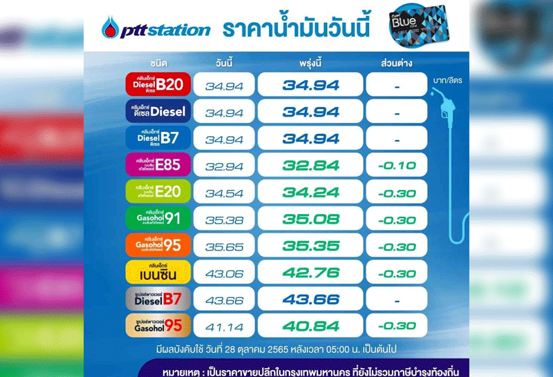 พรุ่งนี้กลุ่มเบนซินลด 30 ส.ต. เว้น E85, E20 ลง 70 ส.ต.