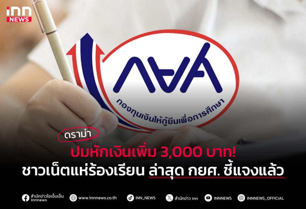 ดราม่า ปมหักเงินเพิ่ม 3,000 บาท! ชาวเน็ตแห่ร้องเรียน ล่าสุด กยศ. ชี้แจงแล้ว