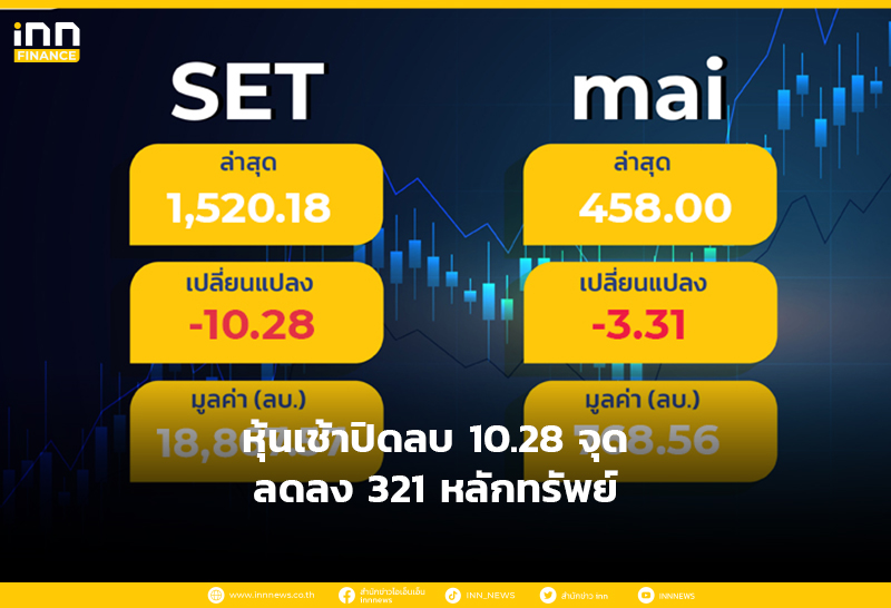 หุ้นเช้าปิดลบ 10.28 จุด ลดลง 321 หลักทรัพย์